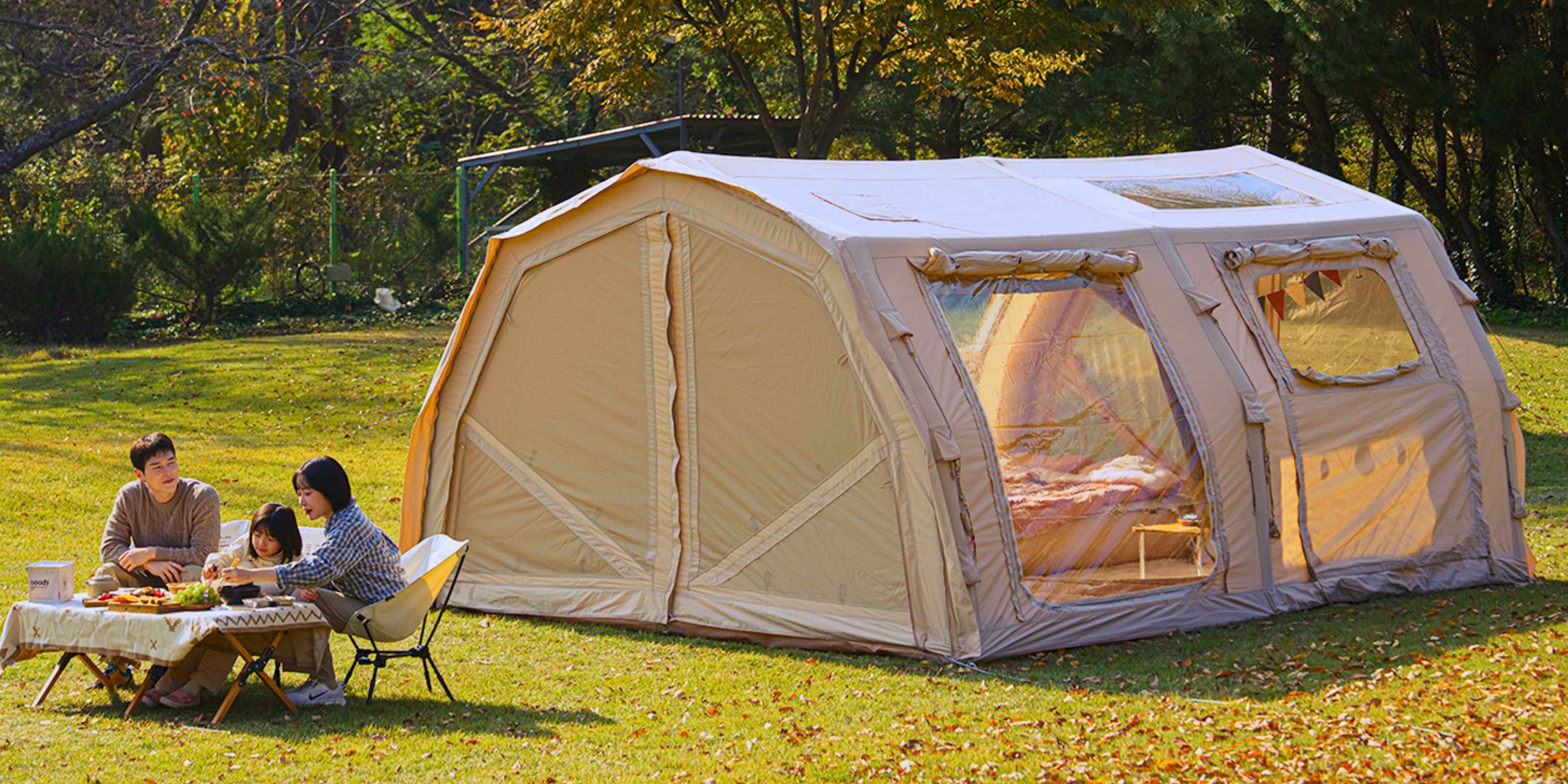 The Coody Familia Pro is a premium inflatable family tent designed as a true living space, not a temporary shelter. Its structure and proportions are engineered to maximize usable interior volume, air quality, and comfort during extended stays.